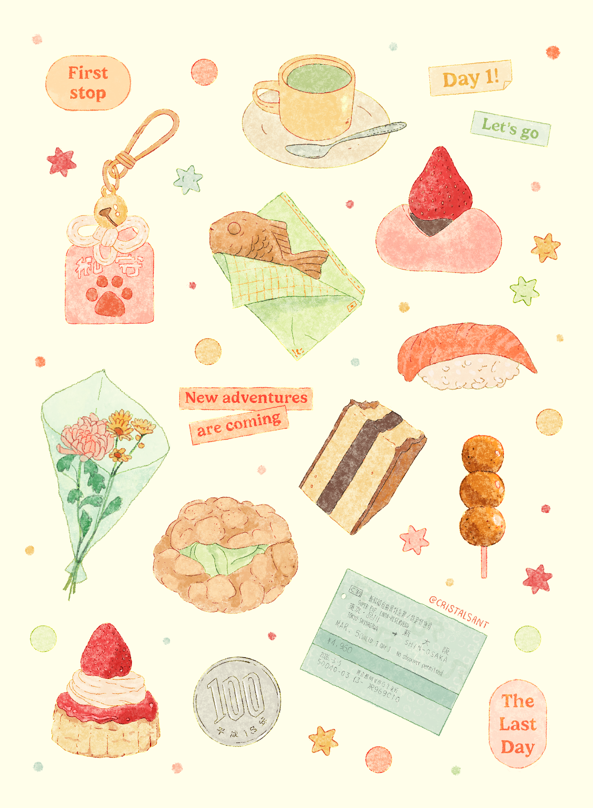 Diseñé este sheet de ilustraciones inspiradas en mi viaje a Japón, en Marzo de 2025 :)